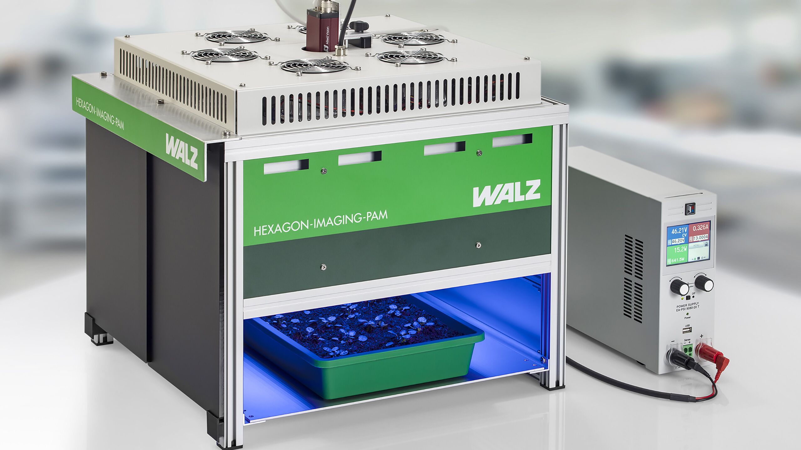 HEXAGON-IMAGING-PAM是德國(guó)WALZ公司新推出的大型蜂巢矩陣葉綠素?zé)晒獬上裣到y(tǒng)。超高分辨率的基礎(chǔ)是成像區(qū)域光場(chǎng)的均勻性,在設(shè)計(jì)過(guò)程中,光源陣列中LED的位置是經(jīng)過(guò)精心布局的,以保證測(cè)量區(qū)域內(nèi)無(wú)陰影,所有成像區(qū)域內(nèi)的樣品均勻照光,樣品間的差異可以盡收眼底。